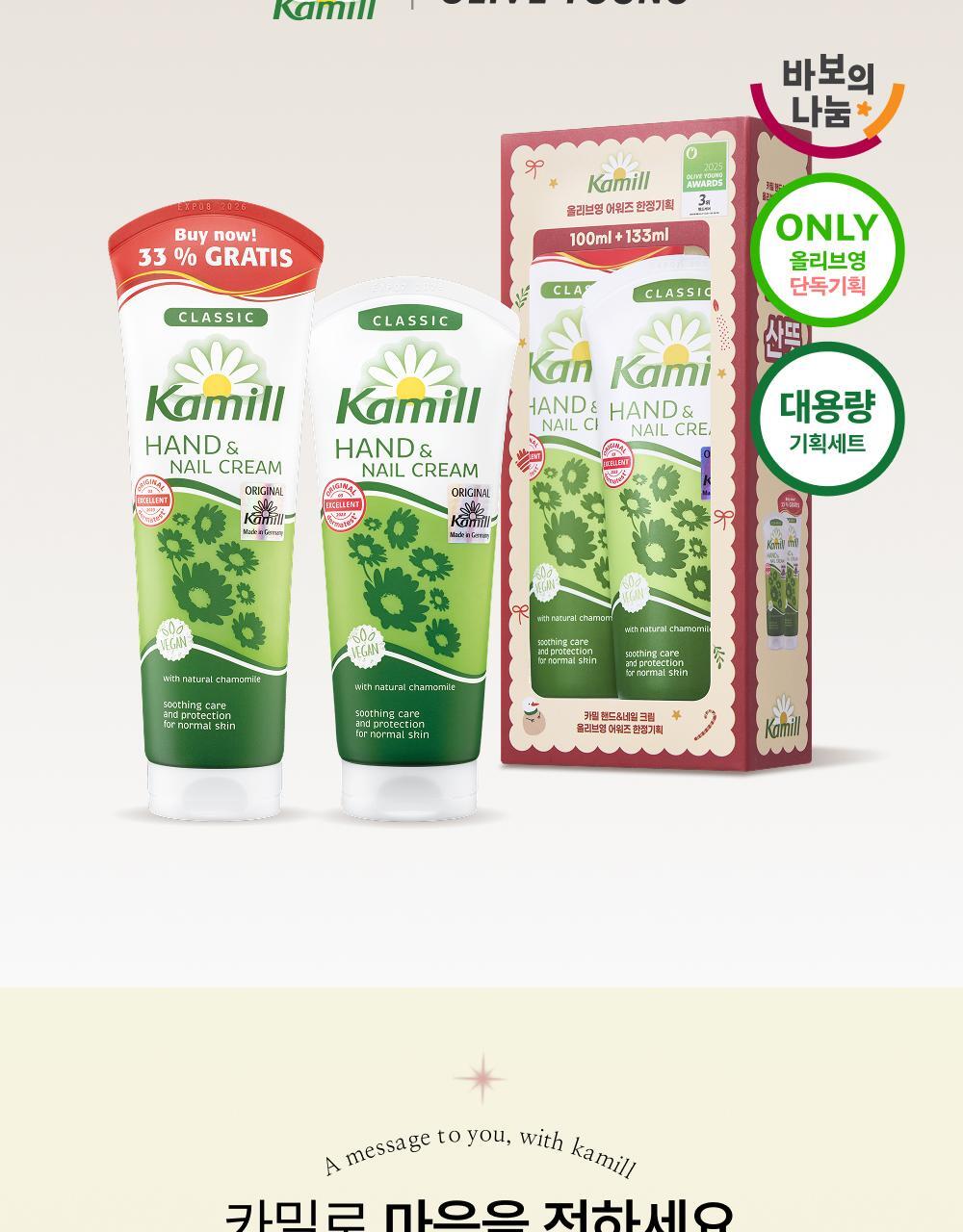 韓國 Olive Young 特別優惠套裝 - Kamill 經典護手護甲霜 100ml Awards限量企劃 (133ml)