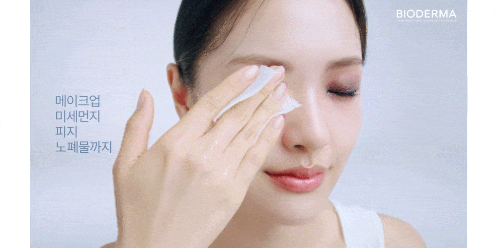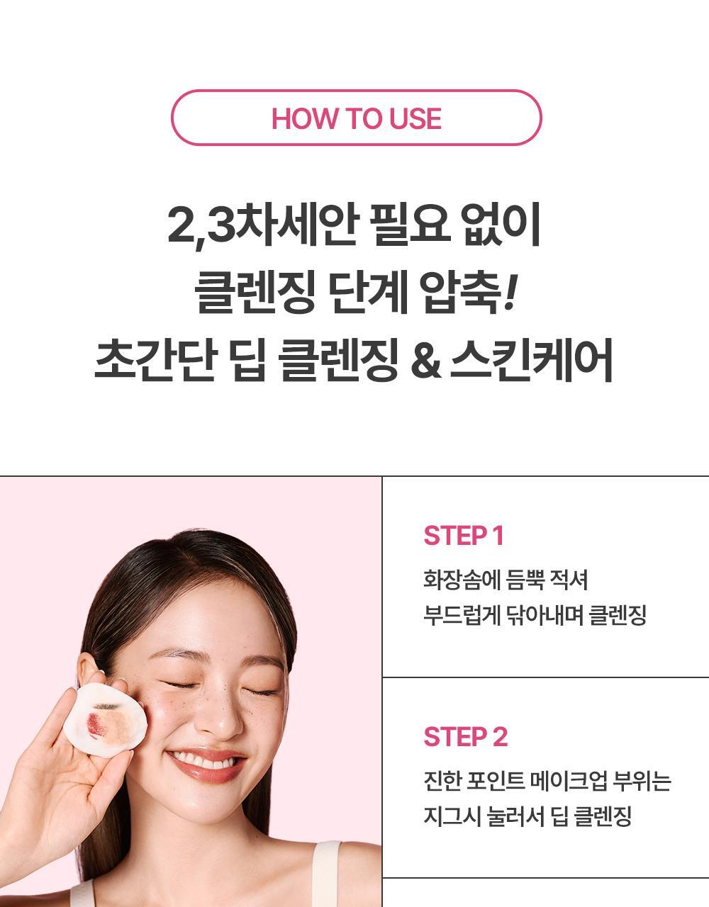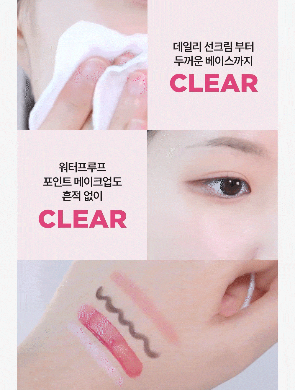 取適量潔膚液於化妝棉,輕拭臉部與眼唇部位