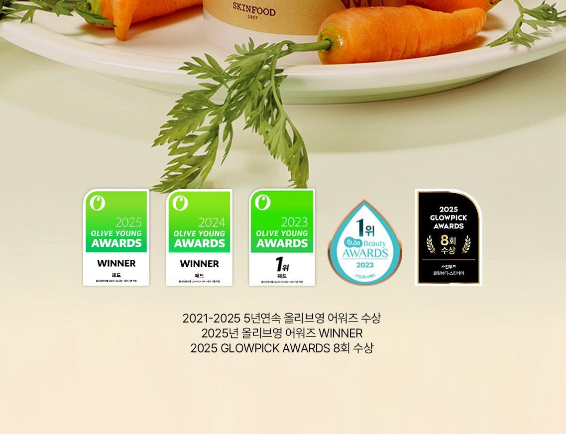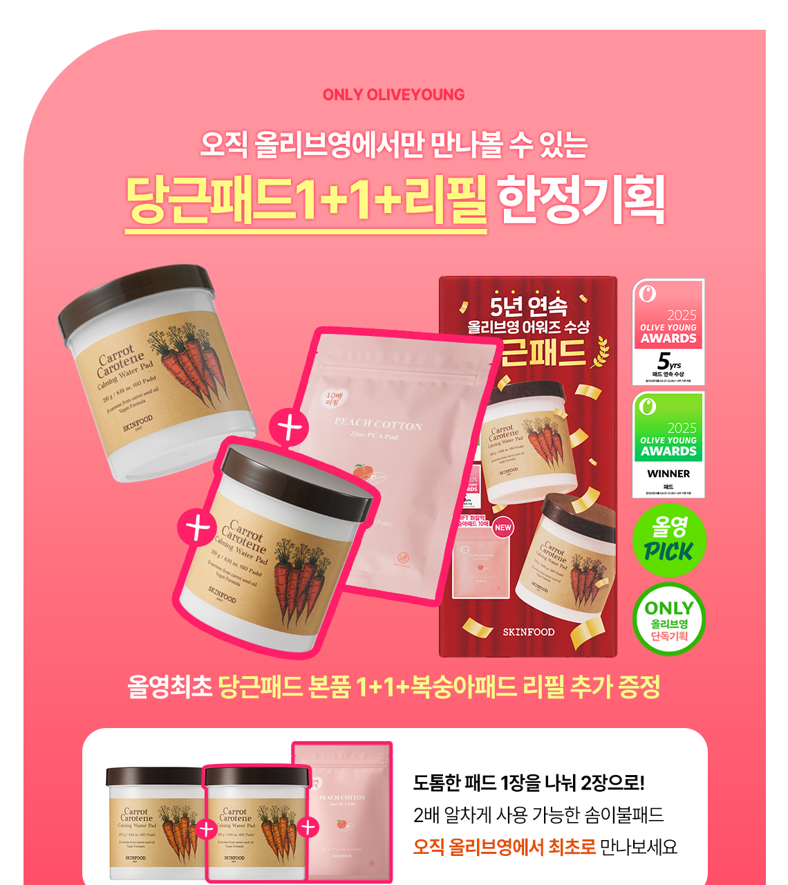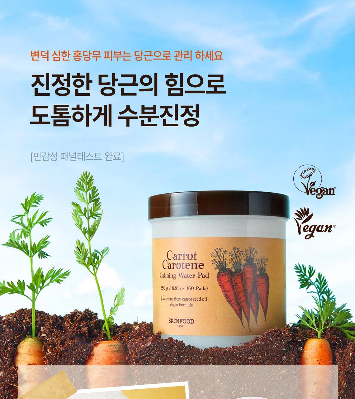 韓國 Olive Young 特別優惠套裝 - Skinfood 胡蘿蔔β-胡蘿蔔素舒緩水凝化妝棉 60片 Double Awards限量企劃 (贈桃子化妝棉10片)
